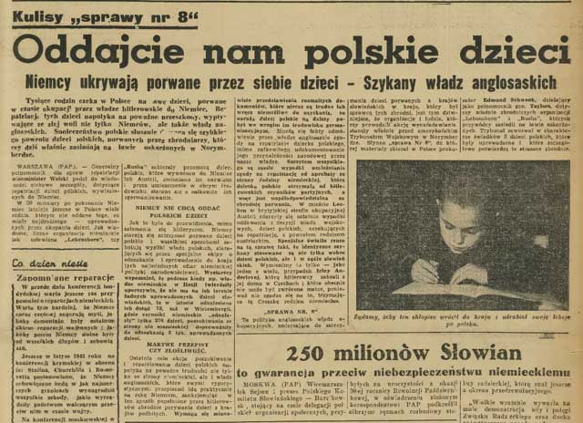 Zespół Romana Hrabara podczas pobytu w Niemczech nawiązał współpracę z mjr. dr. Bernardem Achem oraz właśnie z Edmundem Heinem Schwenkiem, oskarżycielem w VIII procesie norymberskim. Spotkali się m.in. w Norymberdze, gdzie Hrabar udostępnił zebrane przez siebie dokumenty dotyczące losów polskich dzieci (a w szczególności dokumentację dotyczącą losów polskich dzieci, która umożliwiała wykazanie systemowego i planowego charakteru germanizacji jako elementu polityki rasowej III Rzeszy, były to m.in. dokumenty potwierdzające istnienie procedur selekcyjnych, zmiany tożsamości dzieci oraz ich przekazywania do adopcji w rodzinach niemieckich). Obie strony wspólnie ustalały także szczegóły procesu, w tym możliwość powołania na świadków odnalezionych już polskich dzieci.