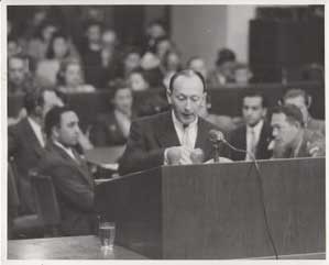 2. Zdjęcie Edmunda Heinza Schwenka przemawiającego w trakcie VIII procesu norymberskiego znajdujące się w zasobach U.S. National Archives and Records Administration |