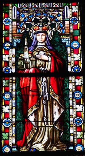 Mnichowice. Fragment witraża z postacią św. Jadwigi |