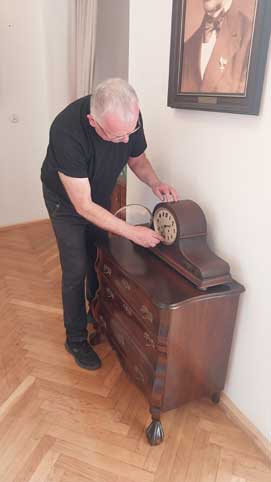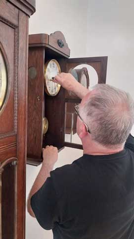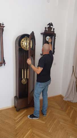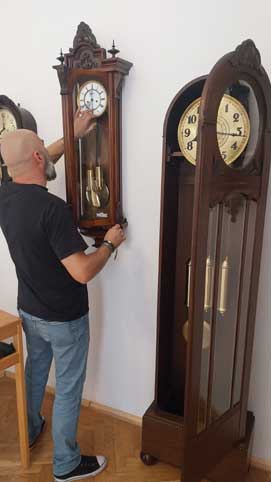 Po rozmieszczeniu i powieszeniu zegarów zaczęto je regulować.