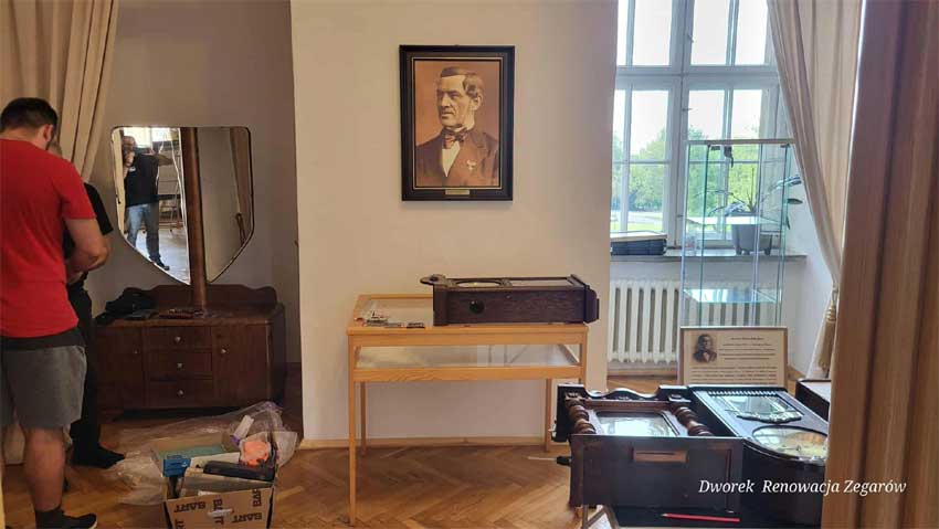 Przygotowanie sali zamku oleśnickiego do ekspozycji zegarów wyprodukowanych przez fabrykę Gustava Beckera