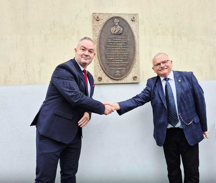 Z lewej burmistrz Oleśnicy Adam Horbacz, z prawej jeden z fundatorów tablicy Wojciech Świniarski. Fot. Krzysztof Dziedzic