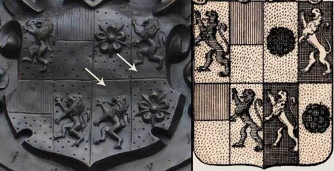 W związku z tym, że WKZ nie zauważył tego błędu, tym samym został on zatwierdzony i wykonawczyni nie musi teraz wprowadzać poprawek nanosząc rylcem kratkę na istniejącym herbie w medalionie. Chociaż powinna się poczuć odpowiedzialna i teraz nanieść kratkę chociażby z częstotliwością jaką nanosiła kropki w polach obok.