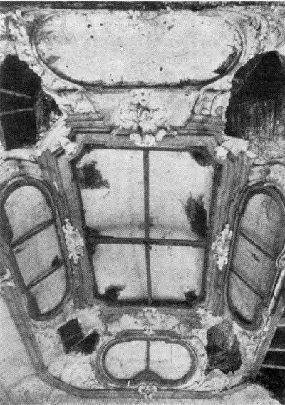 Plafon po usunięciu pięciu obrazów (ok. 1960 r.). Na środku był podwieszony obraz Alegoria Muzyki