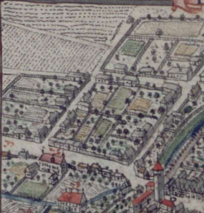 12 - Brama wołowa; 23 - Küchel gaeben???; 26 - kaplica św. Wawrzyńca i przytułek; 33 - ulica wiodąca do Bierutowa