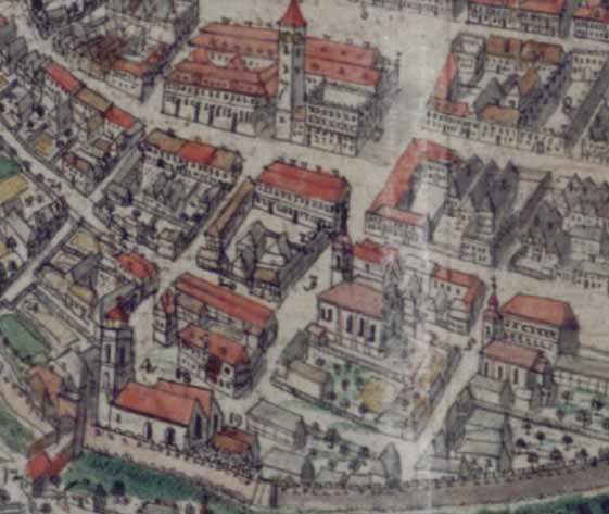 3 - Kościół katolicki; 4 - Kościoły NMP i św. Jerzego; 5 - Kościól Salvatora; 7 - Ratusz;