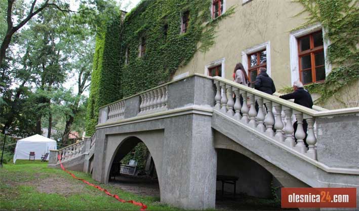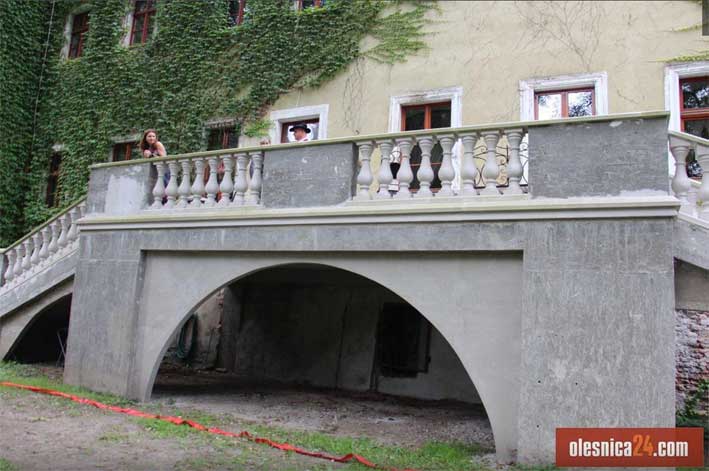 Adam Traczyk - właściciel zamku w Dobroszycach odtwarza stare wejście do zamku od strony ogrodu