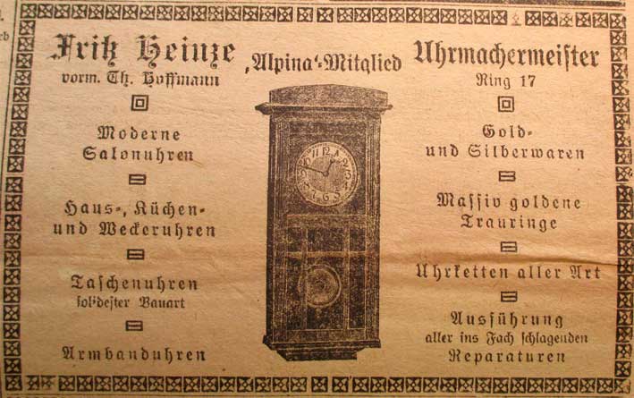 W 1921 ma firmę zegarmistrzowską Hoffmann Georg (zapewne syn) Rynek 17 [1]